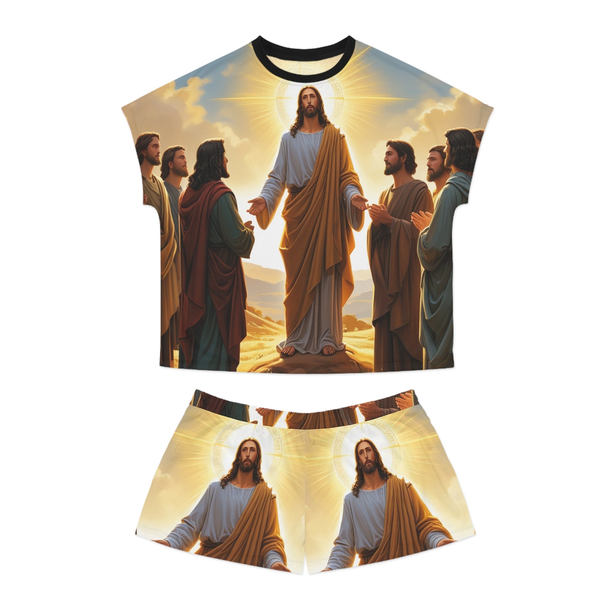 Christian Prayer Pajama Set — Women’s Short Sleepwear with Lion & Prayer Design